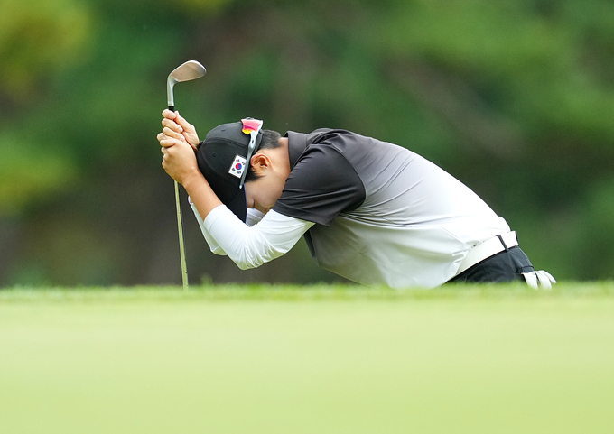 김효주가 8번 홀 칩인 버디를 놓치고 아쉬워하고 있다