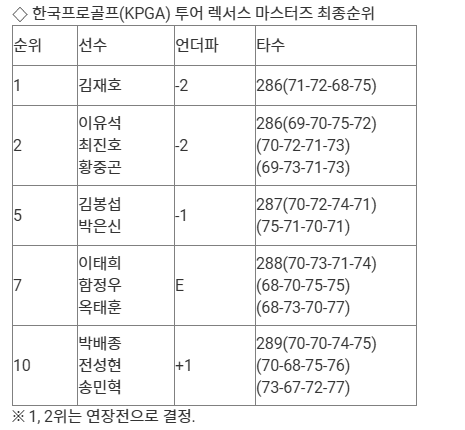 지이코노미 김대진 기자 | 김재호(43)가 한국프로골프(KPGA) 투어 렉서스 마스터즈(총상금 10억 원)에서 우승했다.