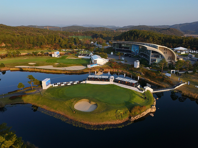페럼클럽 16번 홀(파3) 그린 모습. 그린이 물로 둘러싸인 아일랜드형 홀이다