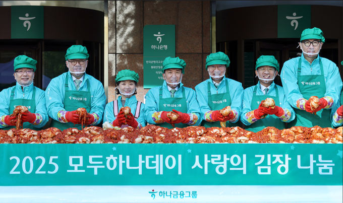 지이코노미 강권철 기자 | 하나금융그룹(회장 함영주)은 하나금융그룹 명동사옥에서 그룹의 아름다운 전통으로 자리 잡은 ESG 대축제 『2025 모두하나데이』의 시작을 알리는 '선포식'과 함께 '사랑의 김장나눔' 행사를 진행했다고 10일 밝혔다.