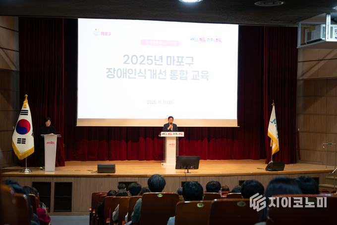 지이코노미 최영규 기자 | 마포구(구청장 박강수)는 11월 11일 오후, 구청 대강당에서 마포구 소속 직원과 근로자 약 500여 명을 대상으로 장애인식개선 통합교육을 진행했다.
