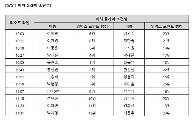매치 플레이 조편성은 위믹스 포인트 랭킹 상위 12명의 선수가 매치 플레이 대진 상대와 티오프 시간을 직접 선택하는 방식으로 진행됐다.