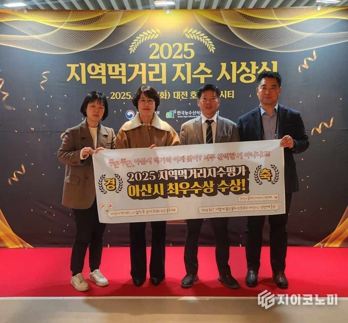 지이코노미 정길종 기자 |아산시(시장 오세현)는 9일 대전 인터시티 호텔에서 열린 ‘2025년 지역먹거리 지수 시상식’에서 최우수상인 농림축산식품부장관상을 수상했다고 밝혔다.