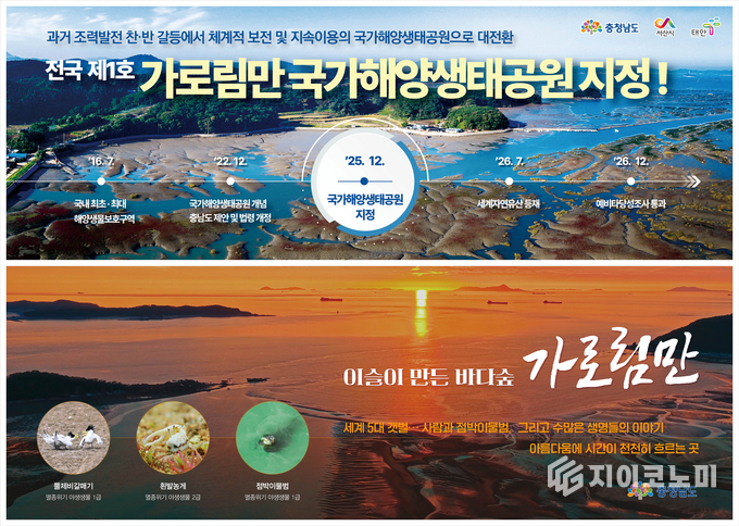 지이코노미 정길종 기자 |충남도가 전국 1호 국가해양생태공원으로 지정된 가로림만을 국내를 대표하는 해양생태거점으로 육성하기 위한 주요 추진계획을 공식 발표했다.
