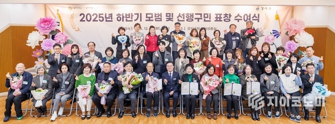 진 구청장은 이날 오후 5시 구청 지하상황실에서 열린 ‘2025년 하반기 모범 및 선행구민 표창 수여식’에서 개인 43명과 단체 4개 팀에 표창을 전달했다.