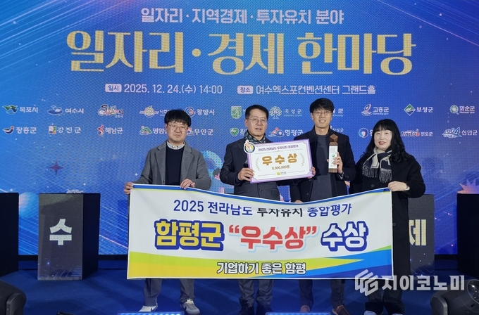 함평군에 따르면, 군은 24일 전남도가 실시한 ‘2025년 전라남도 투자 유치 종합평가’에서 우수상에 선정됐으며, 25일 이를 공식 확인했다.