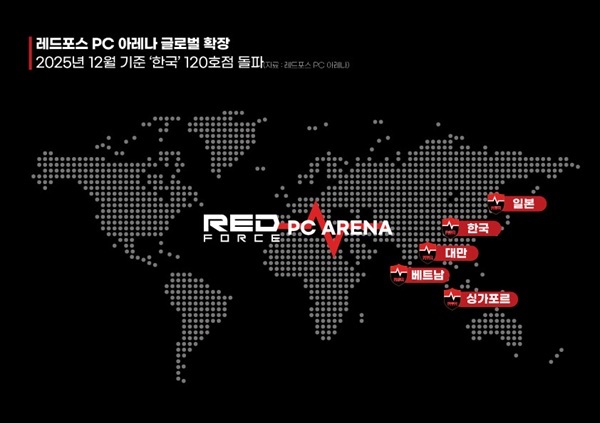 이와 함께 레드포스 PC방은 아시아 1호점으로 베트남 호치민에 첫 해외 거점 매장을 오픈하며 글로벌 진출에 나섰다. 또한 일본, 싱가포르, 대만 등 주요 아시아 국가로의 추가 진출도 순차적으로 추진 중이다. 이는 레드포스 PC방이 PC방 가맹 사업을 넘어, 글로벌 게임·e스포츠 문화 플랫폼으로 도약하고 있음을 보여준다.