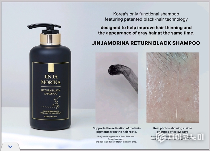 ‘진자모리나 리턴블랙샴푸’는 탈모 관리부터 흑모 촉진, 두피 노화 개선, 항산화 케어까지 네 가지 핵심 기능을 하나의 제품에 집약한 올인원 기능성 샴푸다.