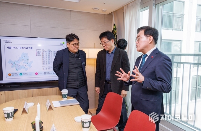 지이코노미 최영규 기자 | 진교훈 서울 강서구청장이 9일(금) 서울에서 최초로 ‘LH(한국토지주택공사) 참여형 가로주택정비사업’으로 준공된 염창역 동문 디 이스트를 방문했다.
