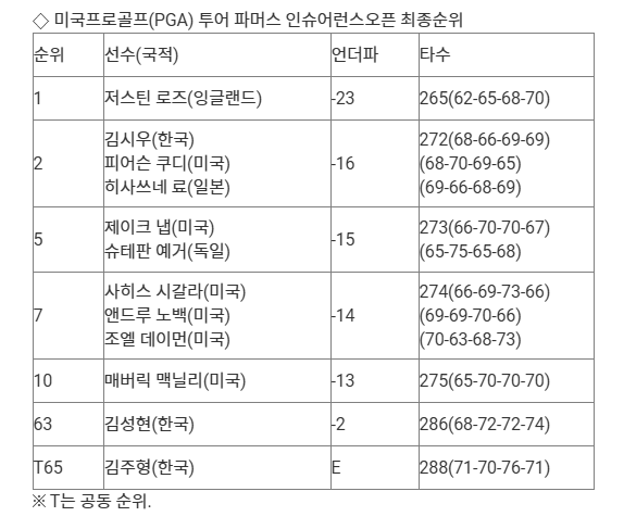김성현이 2언더파 286타로 63위, 김주형은 이븐파 288타로 공동 65위를 각각 기록했다.