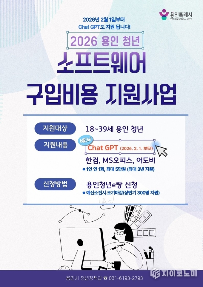 지이코노미 최영규 기자 | 용인특례시(시장 이상일)는 청년들의 디지털 역량 강화를 위해 ‘청년 소프트웨어 구입비용 지원사업’ 대상 품목에 ‘ChatGPT Plus’를 추가했다고 2일 밝혔다.