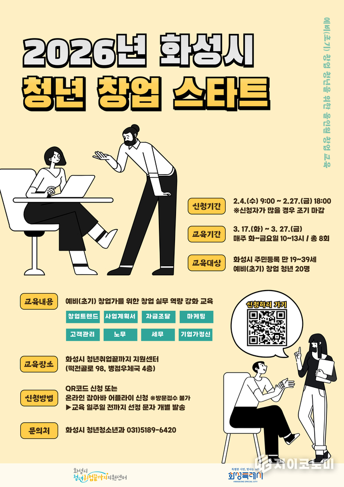 신청 대상은 화성특례시에 주민등록을 둔 만 19~39세 청년(1986년~2007년 출생)으로, 창업에 관심 있는 누구나 신청할 수 있다.