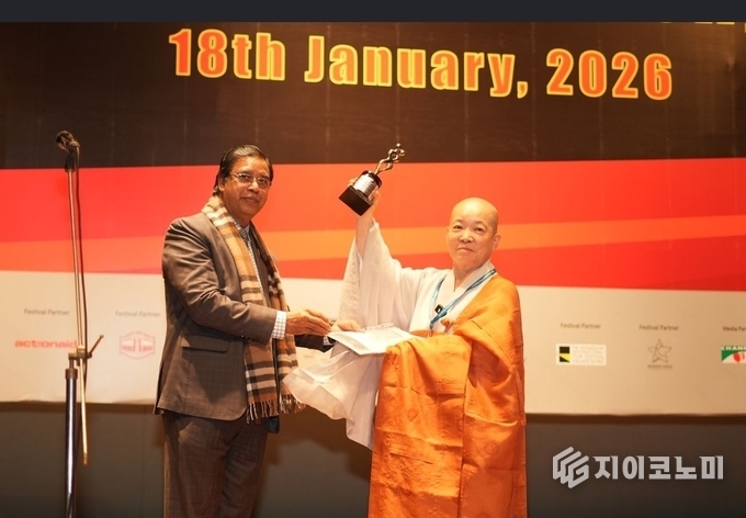 지이코노미 유주언 기자 | 인공지능과 알고리즘이 일상의 언어가 된 시대, 인간 내면의 본질적 능력을 다시 묻는 영화가 국제 영화제에서 주목을 받았다. 불교 수행자이자 영화감독인 대해 스님(속명 유영의)이 연출한 영화 인간 초거대 알고리즘이 방글라데시에서 열린 다카 국제영화제에서 영적 영화 부문 최우수극영화상을 수상하며, 인간의 내면과 깨달음을 현대적 서사로 풀어낸 작품으로 평가받았다.