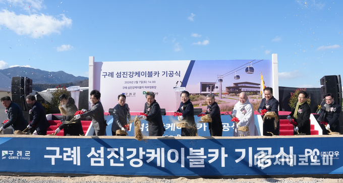 전라남도는 7일 구례 섬진강 케이블카 하류정류장 부지에서 ‘구례 오산권역 섬진강 케이블카 설치사업’ 기공식을 개최했다. 이날 행사에는 김영록 전남도지사와 이개호 국회의원, 김순호 구례군수를 비롯해 유관기관 관계자와 군민 등 500여 명이 참석했다.