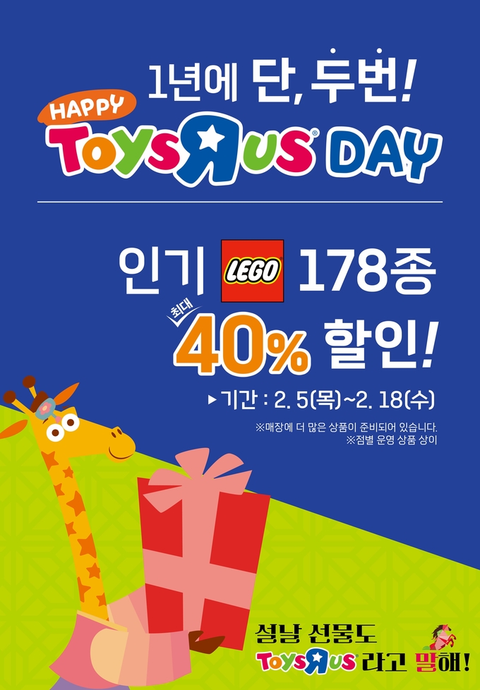 지이코노미 양하영 기자 | 롯데마트 토이저러스가 연중 완구 3대 성수기 중 하나인 설 명절을 맞아 오는 18일까지 대규모 할인 행사 ‘해피 토이저러스 데이’를 진행한다. 명절 기간 완구 매출이 월평균 대비 약 20% 상승하는 수요에 맞춰, 연중 단 두 차례만 진행되는 대표 프로모션을 기획했다.