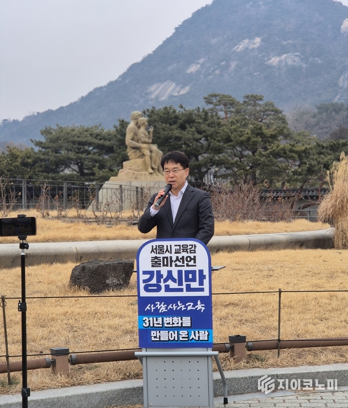 지이코노미 정길종 기자 |강신만 전 이재명 대선후보 선대위 교육혁신위원장이 10일 오후 2시 30분, 청와대 앞에서 기자회견을 열고 서울특별시교육감 출마를 공식 선언했다.