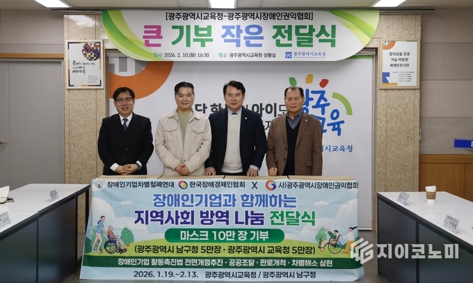 광주시장애인권익협회 김선욱 회장은 “이번 기부가 학생들의 건강을 지키는 데 작은 힘이 되길 바란다”며 “지역사회와 함께하는 나눔 활동을 꾸준히 펼치겠다”고 전했다.