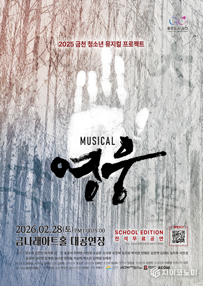 지이코노미 최영규 기자 | 금천구(구청장 유성훈)는 금천 청소년 뮤지컬 프로젝트 ‘영웅’이 오는 28일 금나래아트홀 대공연장에서 개최된다고 밝혔다.