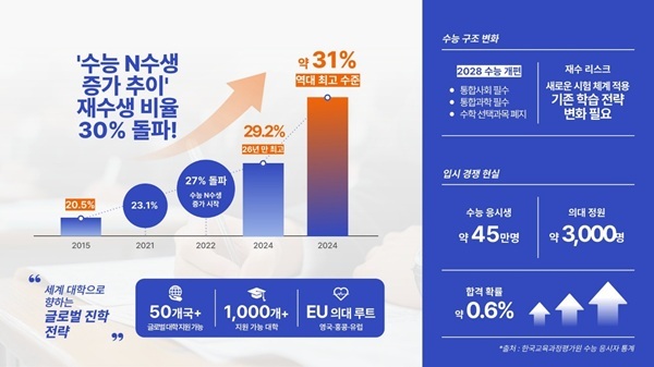 이번 설명회에서는 2027학년도 수능을 준비하는 수험생들이 직면하게 될 입시 환경 변화와 함께 해외 대학 진학 전략 등을 소개할 예정이다.