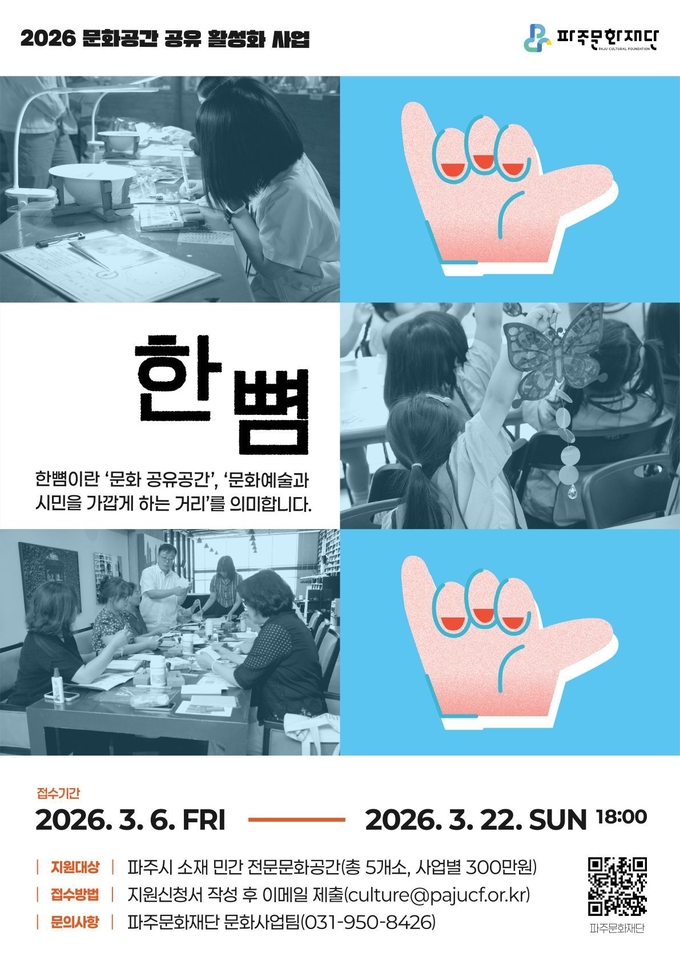 「문화공간 공유 활성화 사업 <한뼘>」은 파주 지역 내 공연장, 박물관, 미술관, 복합 문화시설 등 전문성을 갖춘 민간 문화기반시설을 지원하는 사업이다.