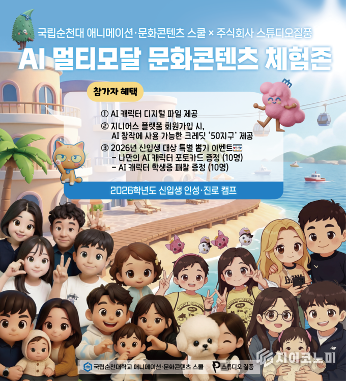 지이코노미 정길종 기자 |국립순천대학교(총장 이병운) 애니메이션·문화콘텐츠스쿨이 2026학년도 신입생을 대상으로 인공지능(AI) 기반 문화콘텐츠 체험 프로그램을 운영하며 미래형 창작 교육에 나선다.
