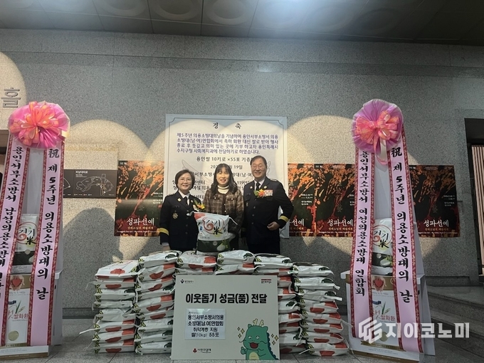 수지구는 19일 용인서부소방서 의용소방대 연합회(남성연합회장 박주성, 여성연합회장 이미숙)가 지역 내 저소득층을 위해 쌀 10kg 55포를 기탁했다고 밝혔다.