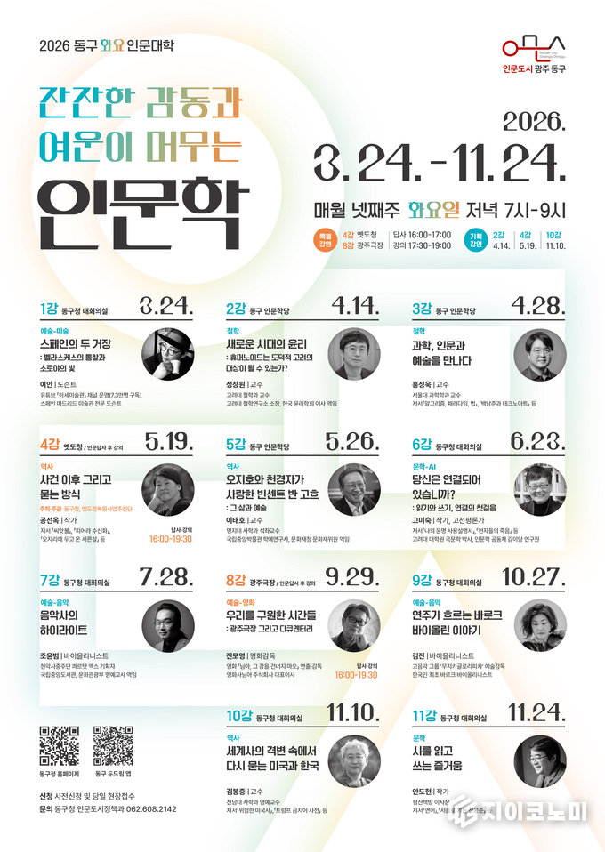 지이코노미 한정완 기자 | 광주광역시 동구가 주민과 함께하는 인문학 강좌 ‘화요 인문대학’을 개강하며 문화 향유 기회 확대에 나선다.