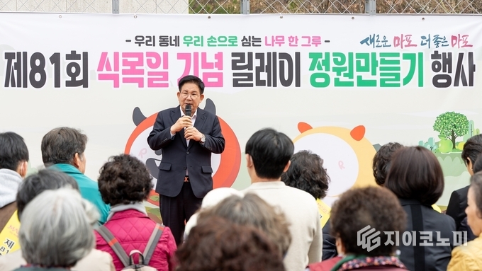지이코노미 최영규 기자 | 박강수 마포구청장은 3월 30일, 국화정원(현석동 225-2)과 샛터근린공원(성산동 177-15)에서 열린 ‘제81회 식목일 기념 릴레이 정원만들기’ 행사에 참석해 주민들과 함께 꽃과 나무를 심었다.