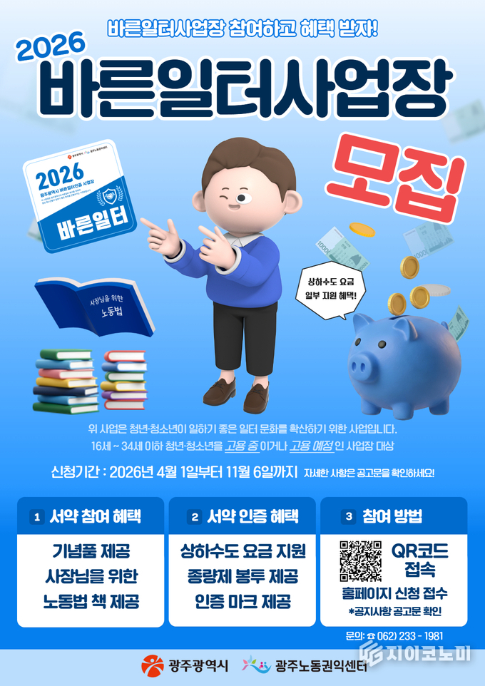 지이코노미 김정훈 기자 | 광주시는 청년과 청소년이 안심하고 일할 수 있는 노동환경 조성을 위해 ‘2026년 바른일터 사업장’ 모집에 나선다고 1일 밝혔다.