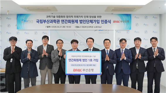 부산은행은 과학문화 확산 정책에 선도적으로 부응하고, 지역사회와의 상생의지를 이어가기 위해 이번 연간회원제에 ‘법인 1호’로 가입했다. 특히 임직원 가족을 대상으로 연간회원권 200매를 구매해 과학 체험 기회를 넓히고, 일상 속 과학문화 향유를 지원할 예정이다.