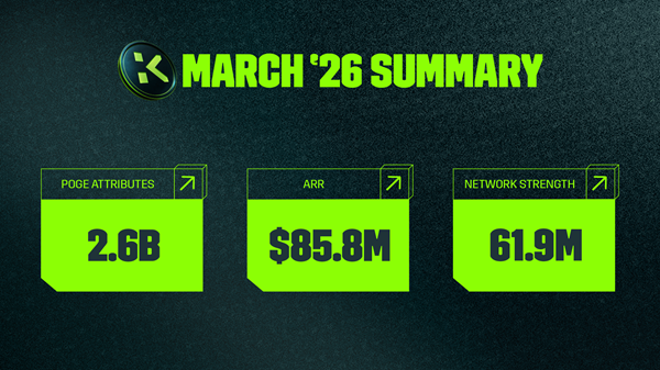 최근 발표된 3월 운영 성과 보고서에 따르면, 케이젠은 단순한 수치상의 성장을 넘어 허수 지표(Vanity Metrics)를 배제하고 검증된 신원 데이터와 배포 시너지에 집중하는 전략적 행보를 보였다. 이 기간 중 처리된 POGE(Proof of Gaming Experience) 데이터 속성은 무려 26억 개에 달하며, 이는 신원 및 평판 그래프를 비약적으로 강화해 가짜 프로필이나 봇을 활용한 합성 트래픽의 생성을 사실상 차단하는 결과로 이어졌다. 이를 통해 기록된 6,190만의 네트워크 강도는 전 세계적인 규모에서 검증된 유저들이 유기적으로 결합되어 발생하는 복리 효과를 여실히 보여준다.