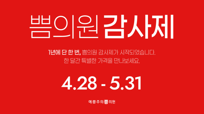 지이코노미 양하영 기자 | 예쁨주의쁨의원이 5월 가정의 달을 맞이해 4월 28일부터 5월 31일까지 연중 가장 큰 규모의 프로모션 행사인 ‘감사제’를 진행한다고 밝혔다.
