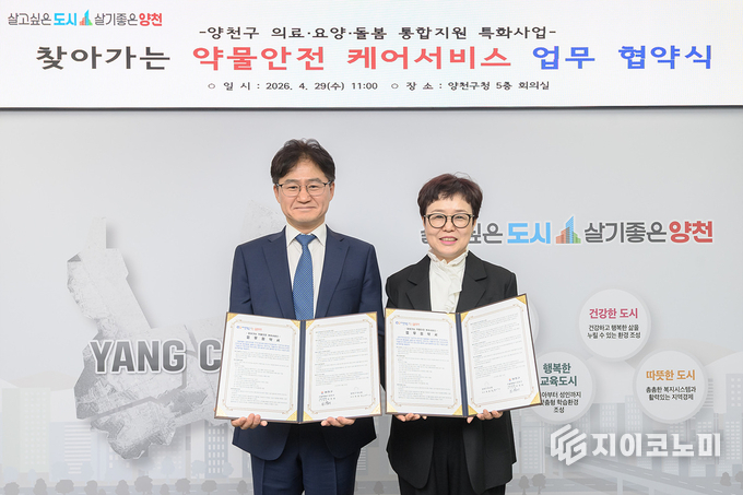 지이코노미 최영규 기자 | 양천구는 29일 오전 구청 5층 회의실에서 양천구약사회와 ‘찾아가는 약물안전 케어서비스’ 추진을 위한 업무협약(MOU)을 체결했다고 밝혔다. 이번 협약은 약물관리가 필요한 취약계층을 대상으로 약사가 직접 가정을 방문해 맞춤형 서비스를 제공하는 양천구 통합돌봄 특화사업의 일환이다.