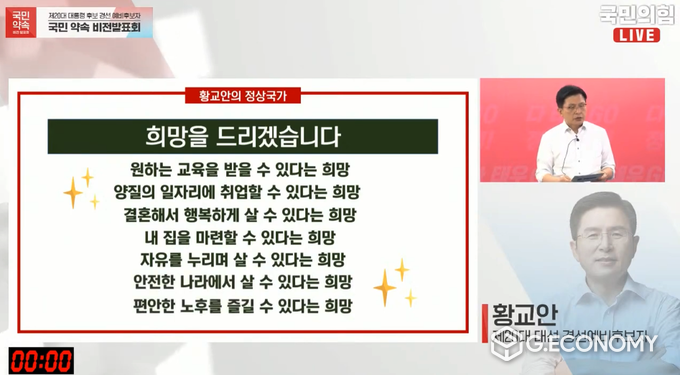 지이코노미 이승현 기자 | 국민의힘이 지난 25일 여의도 당사에서 대통령 후보 경선 예비후보자 국민 약속 비전 발표회를 가진 가운데, 황교안 예비후보의 발언이 주목을 받고 있다.
