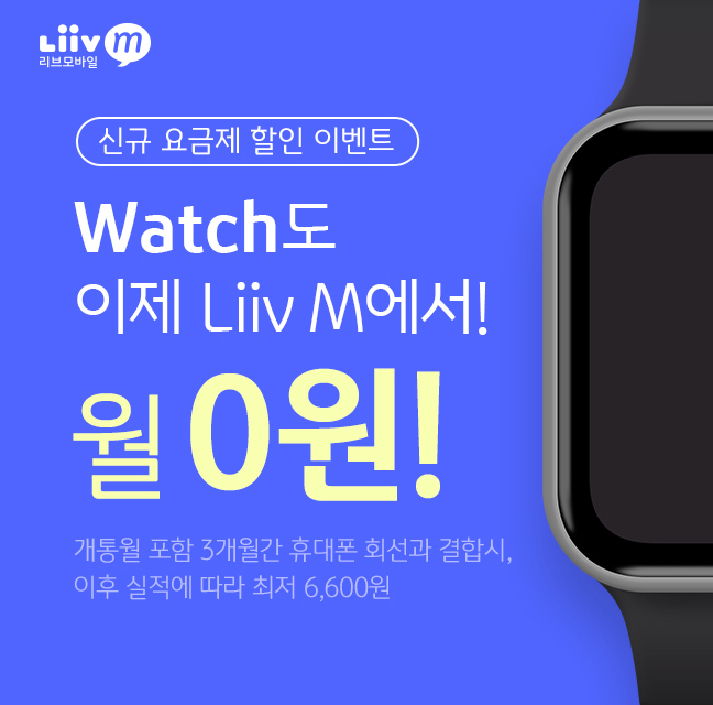 ‘LTE 워치 요금제’는 애플워치 또는 갤럭시워치를 사용하는 고객을 대상으로 하는 요금제이다. 기본요금은 월 7,700원이며 리브모바일 휴대폰 회선을 함께 사용하는 경우 월 1,100원 할인이 적용돼 월 6,600원으로 이용할 수 있다.