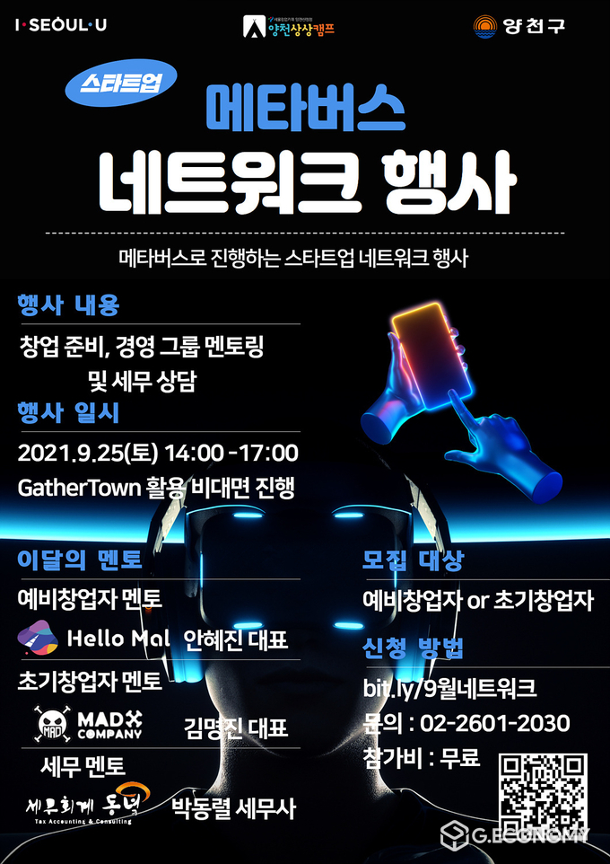 서울창업카페 양천신정점이 주체가 된 메타버스 플랫폼 ‘개더타운(Gather Town)’에서 진행하는 이번 행사에는 스타트업 멘토들이 참여해 창업 준비, 세무 상담 등 창업 전반에 대해 가상공간 속에서 생생한 상담을 풀어낼 예정이다.