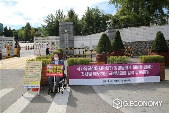지이코노미 이창희 기자 | 대한민국상이군경회(회장 유을상)는 28일 오전 11시 서울 용산구 소재 국방부 정·후문 앞에서 전국 중상이 자활용사촌 협의회와 함께 국방부의 보훈단체 수의계약폐지에 항의하고자 1급 중상이용사들의 휠체어 릴레이 1인 시위를 진행했다.