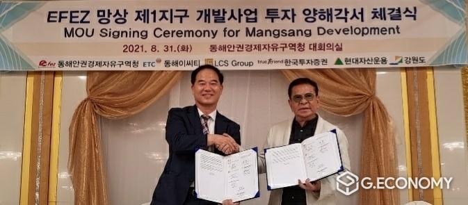 - LCS그룹은 2021년 7월부터 2025년 7월까지 4년간 동해시 망상1지구에 미화 1억 달러를 투자하여 주거, 상업 및 리조트 개발사업을 추진하기로 한 협약을 맺었다. 9월 23일 LCS그룹은 미화 1억 달러 국내 직접투자(FDI) 신고를 완료하고 협약 이행에 대한 보증금 성격으로 미화 1백만 달러를 국내 은행에 송금했다. 강제성 없는 MOU 체결에도 불구하고 한 달여 만에 1백만 달러를 송금한 것은 협약 이행에 대한 강한 의지라고 평가되고 있다.