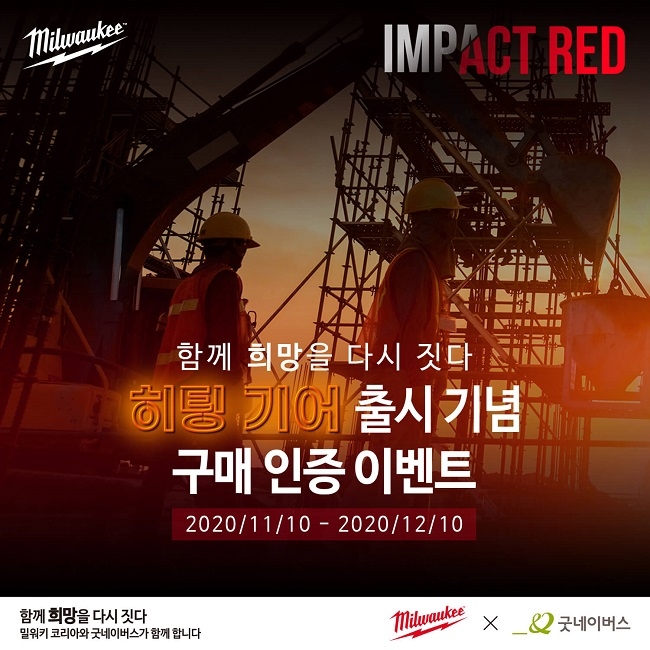 먼저 IMPACT RED 기부 캠페인은 충전식 발열의류 ‘밀워키 히팅기어’를 소비자가 구매ㆍ인증 시, 밀워키에서 해당 판매 금액의 일부를 굿네이버스에 기부하는 사회 공헌 캠페인이다.