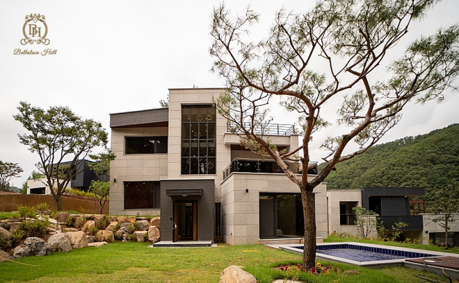 두번째, 개성있는 럭셔리함, 55평형의 개성있는 주택은 가족을 위한 공간임과 동시에 파티를 위한 공간으로 최고의 주택이다. 카페를 연상케 하는 중앙 계단을 통해 각층의 독립된 공간을 사용할 수 있으며, 꼭대기 주택의 하늘의 해와 별을 볼 수 있는 공간은 마치 시간이 멈춘 듯한 만족감을 준다. 주방과 거실에서 한번, 2층 테라스에서 또 한번 눈부신 채광을 느낄 수 잇으며, 각층마다 개별 공간을 통해, 많은 손님들에게도 또 한번 멋을 공유할 수 있다. 한층 한층 오를 때마다 자연환경을 느낄 수 있는 계단형 구조와 172평의 넒은 대지와 개인 수영장은 마치 베버리힐즈의 저택을 연상케 한다