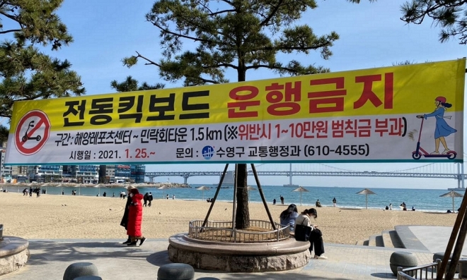 - 수영구 풀뿌리 민주주의 모임, 광안리 ‘전동킥보드 운행 금지’ 현수막 관련 민원 제출