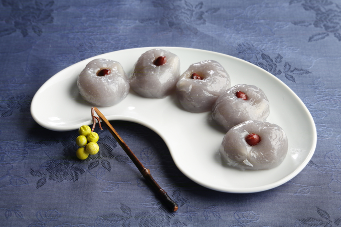❹ 끓는 찜기에 젖은 면보를 깔아주고, 빚은 떡을 올려 20분간 찐다.