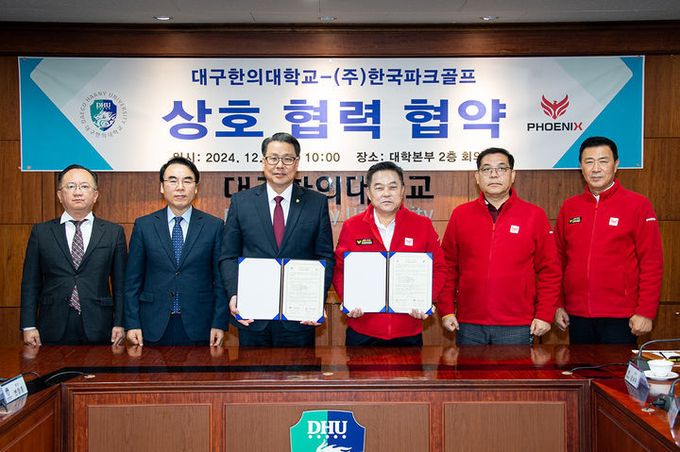 지이코노미 이창호 기자 | 피닉스 브랜드로 유명한 한국파크골프는 대구한의대학교와 5일 상호업무협약을 맺고 평생교육 등 파크골프 진흥을 위해 손을 맞잡았다고 밝혔다. 협약식에는 장세주 한국파크골프 회장과 변창훈 대구한의대 총장 등 양 기관 관계자 10여 명이 함께했다.
