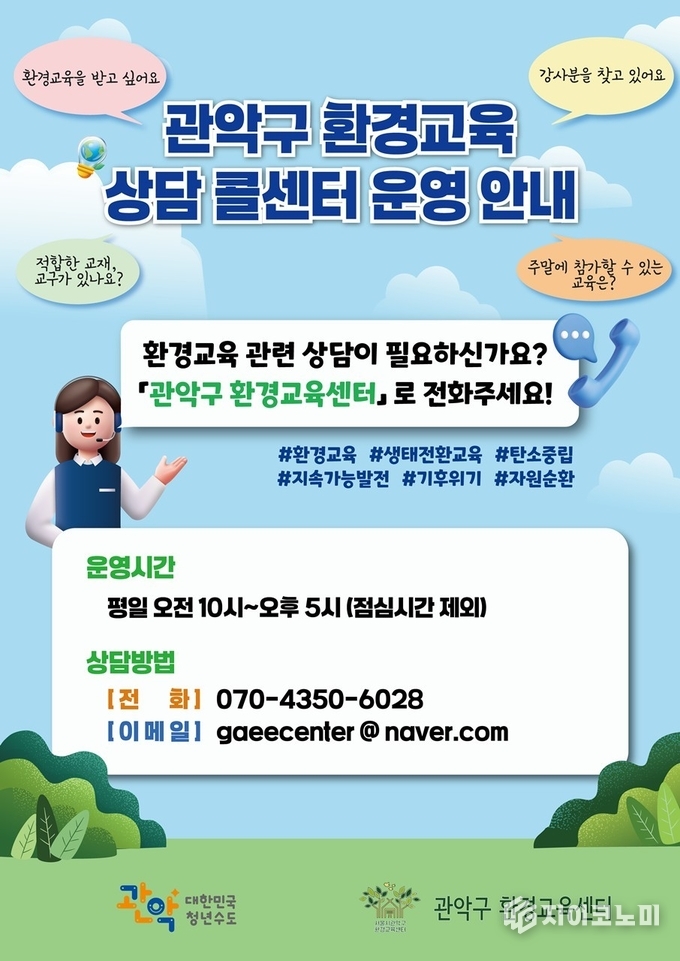 한편, 구는 주민과 기관‧기업의 환경교육 참여를 지원하기 위해 ‘관악구 환경교육 상담 콜센터’를 시범 운영하고 있다.