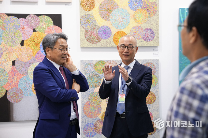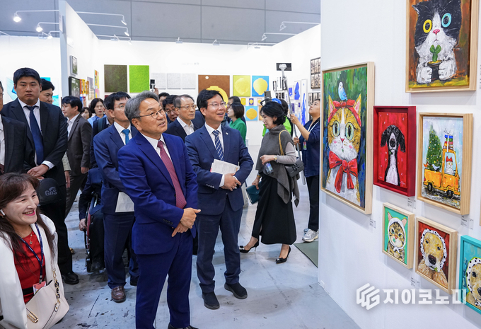 ▲강 시장은 이어 전시 부스를 돌아보며 참여 작가와 갤러리 관계자들과 작품 세계에 대해 이야기를 나누는 등 현장 소통에 나섰다.