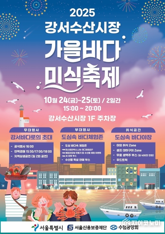 먼저, 강서수산시장(강서도매시장로 130)에서는 ‘가을바다 미식축제’가 오는 24일(금)과 25일(토) 이틀간 오후 3시부터 8시까지 열린다.