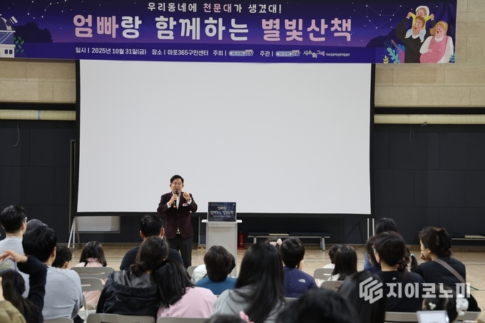 지이코노미 최영규 기자 | 박강수 마포구청장은 10월 31일 저녁 7시, 마포365구민센터 내 마포365천문대에서 열린 ‘엄빠랑 함께하는 별빛산책’ 행사에 참석해 마포구민들과 특별한 가을밤을 보냈다.