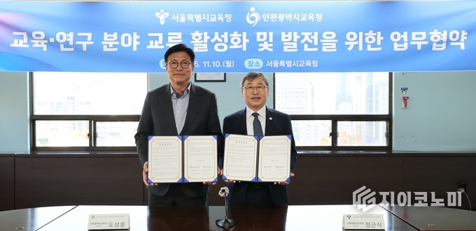 지이코노미 신종삼 기자 | 인천광역시교육청(교육감 도성훈)은 10일 서울특별시교육청(교육감 정근식)과 함께 읽걷쓰 교육과 심층 쟁점 독서토론 기반의 교육 혁신 및 교육·연구 교류 활성화를 위한 업무협약을 체결했다.