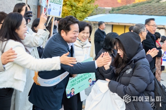 지이코노미 정길종 기자 |오세현 아산시장을 비롯한 국·소장 등 간부 공무원들은 13일 ‘2026학년도 대학수학능력시험’을 맞아 아산 지역 8개 시험장을 찾아 수험생들을 응원했다.