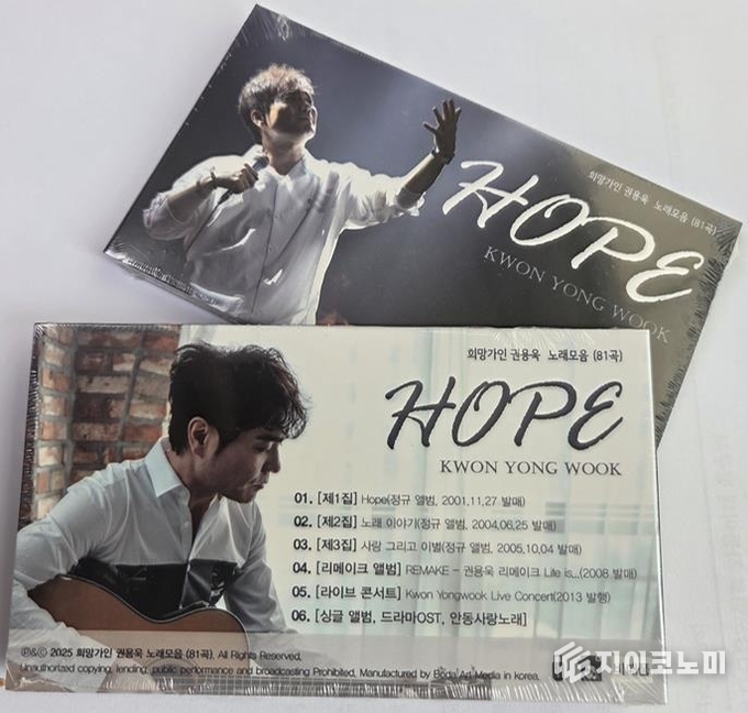 ‘라이브의 전설’로 불리는 가수 권용욱이 40년 동안 음악 활동을 하면서 발표한 음원 81곡을 담은 USB 음반 <희망가인 권용욱 노래 모음 (81곡) - Hope Kwon Yong Wook>을 제작했다. 이 음반은 오는 12월 7일 저녁 7시 공연장 ‘열애’에서 열리는 ‘송년 음악회’에 참석한 모든 팬들에게 선물할 예정이다.